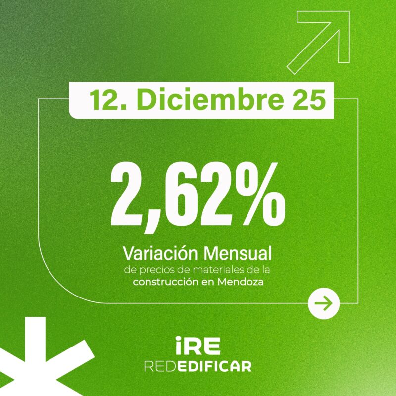 El Índice Red Edificar registró en diciembre un aumento mensual del 2,62% y consolidó un año de ajustes sostenidos en los precios de los materiales de la construcción en Mendoza. El Índice Red Edificar (IRE),